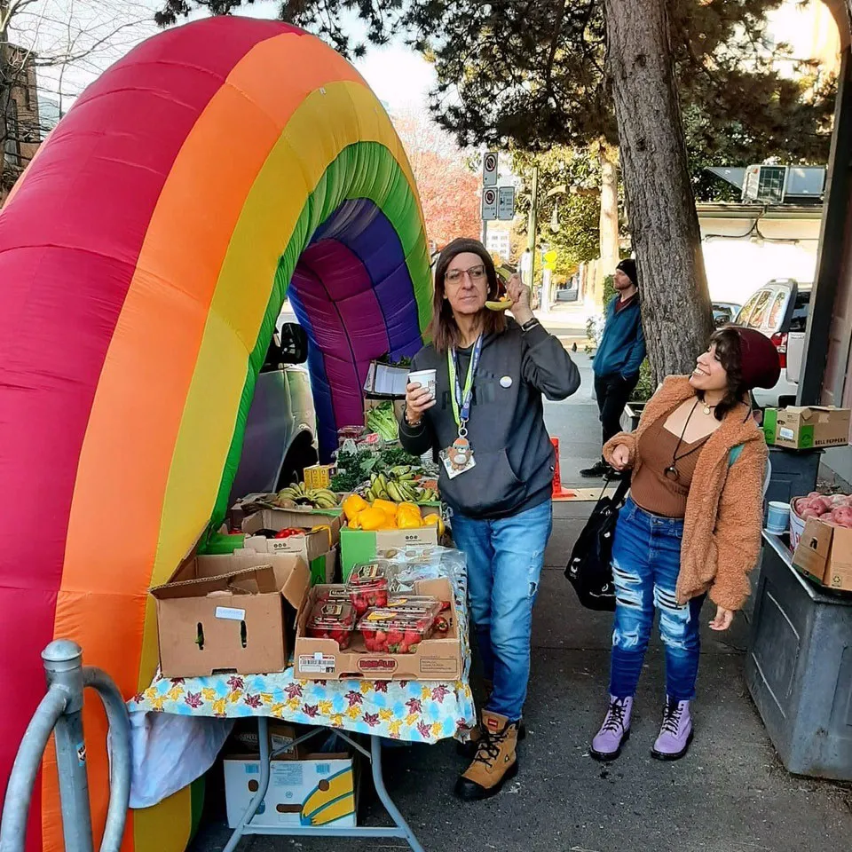 The Gift of Food program is a pop-up food share at a Two-Spirit, trans and gender diverse Single Room Occupancy (SRO) in the Downtown East Side. We offer fresh produce, baked goods and staple products, depending on our donations. We fund this program by partnering with Trans Care BC.